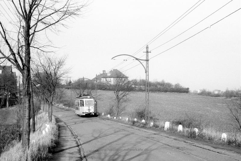 Auf dem Beitragsbild von Dieter Höltge (Sammlung Stefan Höltge) ist Triebwagen 182 (Credé 1951) am 17. November 1962 als Linie 15 auf der Kemnader Straße in Richtung Henrichshütte unterwegs. Das Gebäude mit dem Türmchen ist das Lutherhaus der Evangelischen Kirchengemeinde Stiepel.
